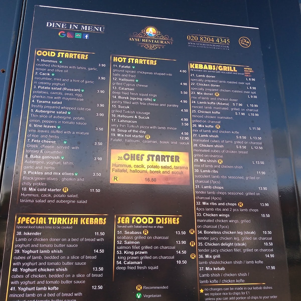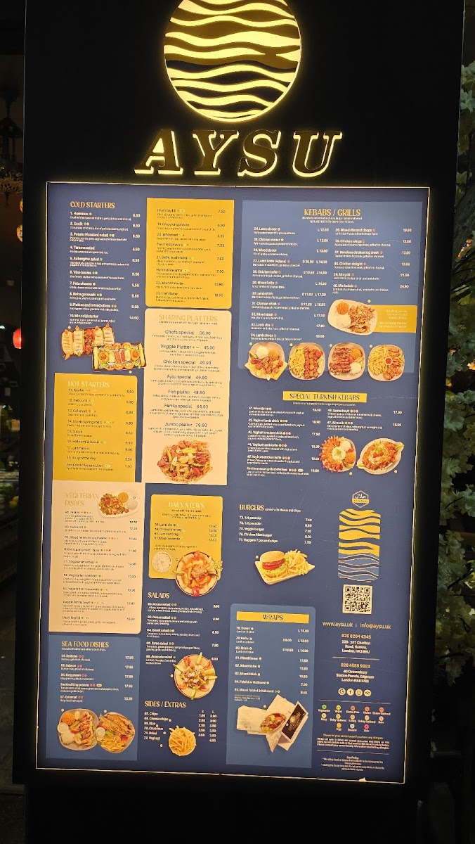 At Aysu Restaurant, located at 229-231 Charlton Rd, Harrow, you'll find a menu that blends the rich flavors of Mediterranean cuisine with a touch of contemporary flair. The dishes here are designed to tantalize your taste buds, from tender grilled meats to fresh seafood, each carefully prepared with high-quality ingredients. You can savor flavorful appetizers like hummus and baba ganoush, perfect for sharing, before diving into hearty mains like lamb kebabs or traditional Turkish stews. Vegetarians will also feel right at home, with a variety of vibrant, plant-based dishes that highlight seasonal produce. Whether you’re in the mood for something light or a satisfying feast, the Aysu Restaurant Menu offers a delightful selection for every craving. Each plate is crafted with love, making it a perfect spot for a casual meal or a special occasion with friends and family.